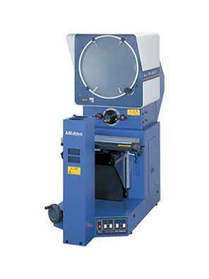 – By separating axial motion, and stabilizing the XY measuring table in the vertical direction, high measuring accuracy of (3+0.02L)μm has been achieved on the PJ-H30 Series Profile Projectors. Focusing is accomplished by moving the screen head itself up & down with the hand wheel or motorized unit. The power focusing (PJ-H30D type) provides higher performance.